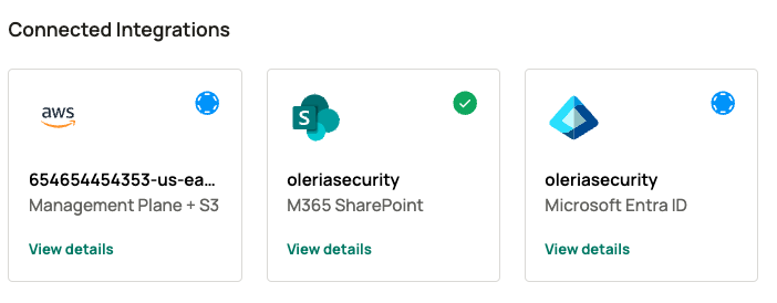 Step 9: Find a newly integrated AWS Management Plane + S3 in your Oleria workspace connected integrations